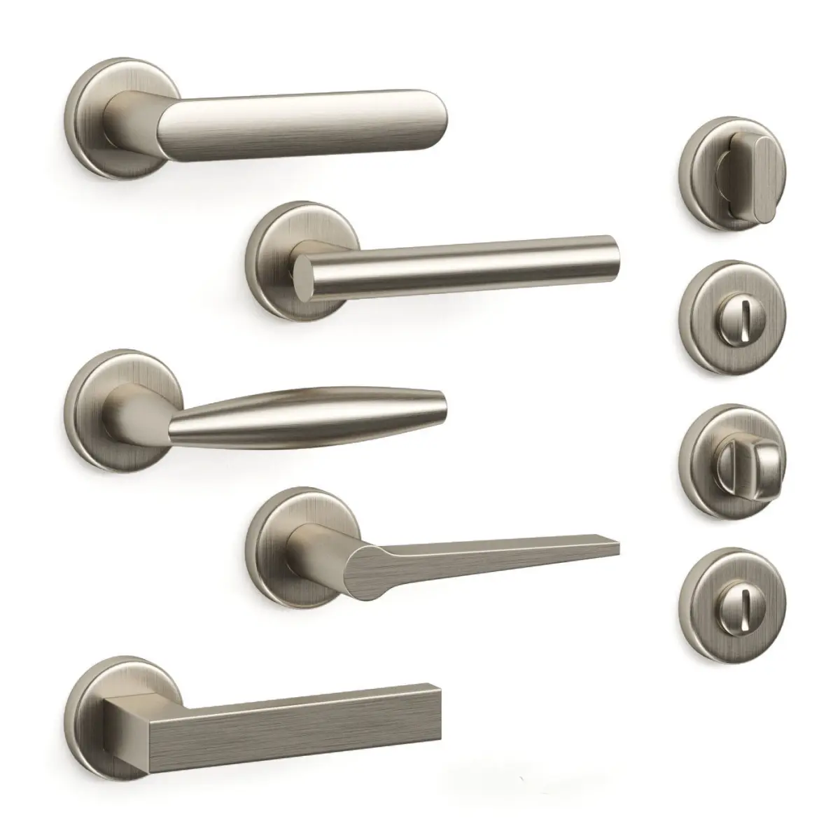 Set of 5 door handles Olivari: Lama, Aurelia, Planet, Beijing, Laser 3 finishes https://www.olivari.it/en/handles/
