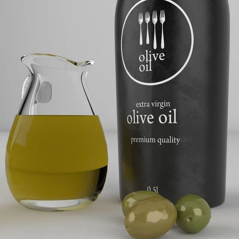 A DETAILED 3D MODEL OF AN OLIVE OIL SET;