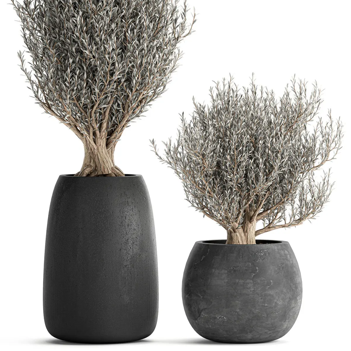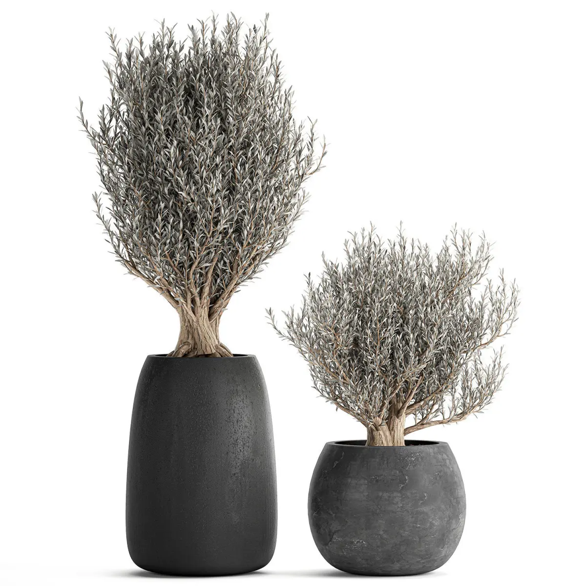 Olive trees in a black flowerpots 809 3D model