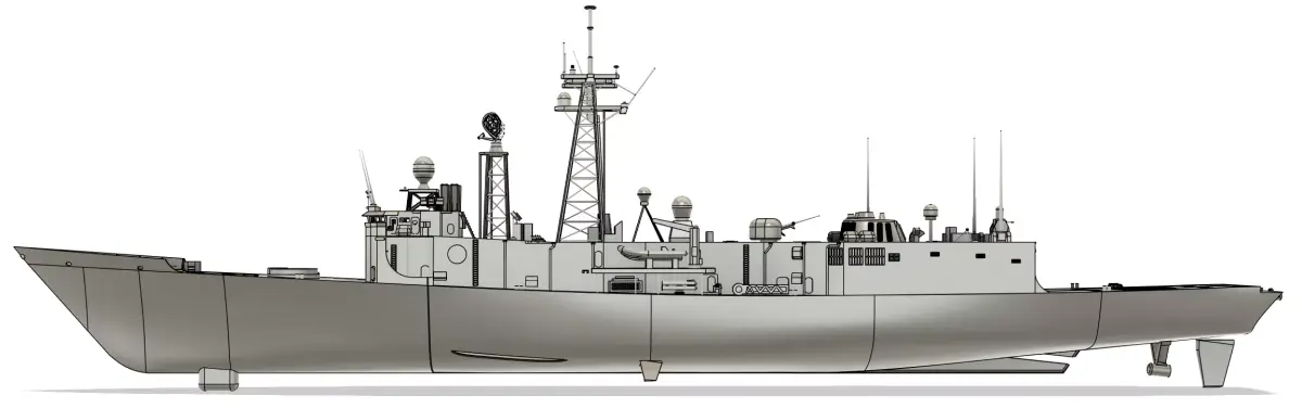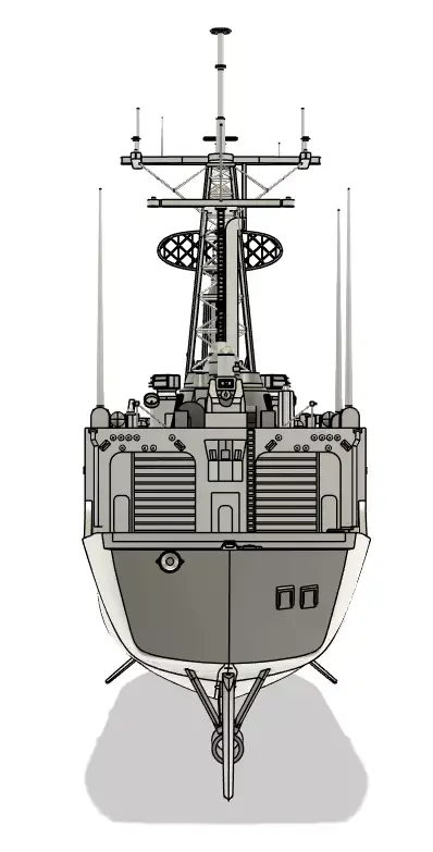 This 1/96 scale model is based on the Oliver Hazard Perry class guided missile frigate (FFG.) Specifically, it’s based off of the configuration of my first ship FFG-49 USS Robert G. Bradely in it’s early 2000's configuration. (Hence the missing missile launcher.) It was also my very first attempt at 3D modeling. I’ve gone back with the skills I’ve developed over the past few months and attempted to edit it as best as I could without starting from scratch, but keep in mind that I didn’t know how supports worked at that time. It may not be the easiest to print, but I know it does work as a few of my friends have created successful test prints (even before the edits.)