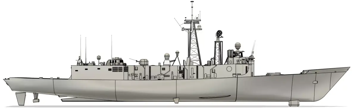 Update 1 (11/2/25): I added in the file I created to make a stand for the model (as pictured.) It is marked with USS ROBERT G. BRADLEY, but the nameplates can be reversed to the flat side to decal/paint on whichever name you want to use. There is an I marked on the stand front/back to indicate which sides should be facing inside.Update 2 (11/2/25): I received a request to make this a waterline model, so I am including a zip file of the hull pieces cut at the waterline. Assembly instructions/file numbers are still the same, just without everything from the WL below.