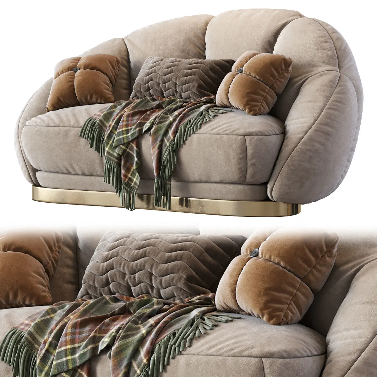 PRODUCT DESCRIPTIONPRODUCT DETAILSOlympia projects pure haute couture from this three-piece suite, with its sensuous feminine outline and voluptuous shape. Each exquisitely curved design features detailed seaming to the front and reverse, surmounting either bold metal stands or exposed legs enclosed by a brass circlet, creating the pièce de résistance for any interior.