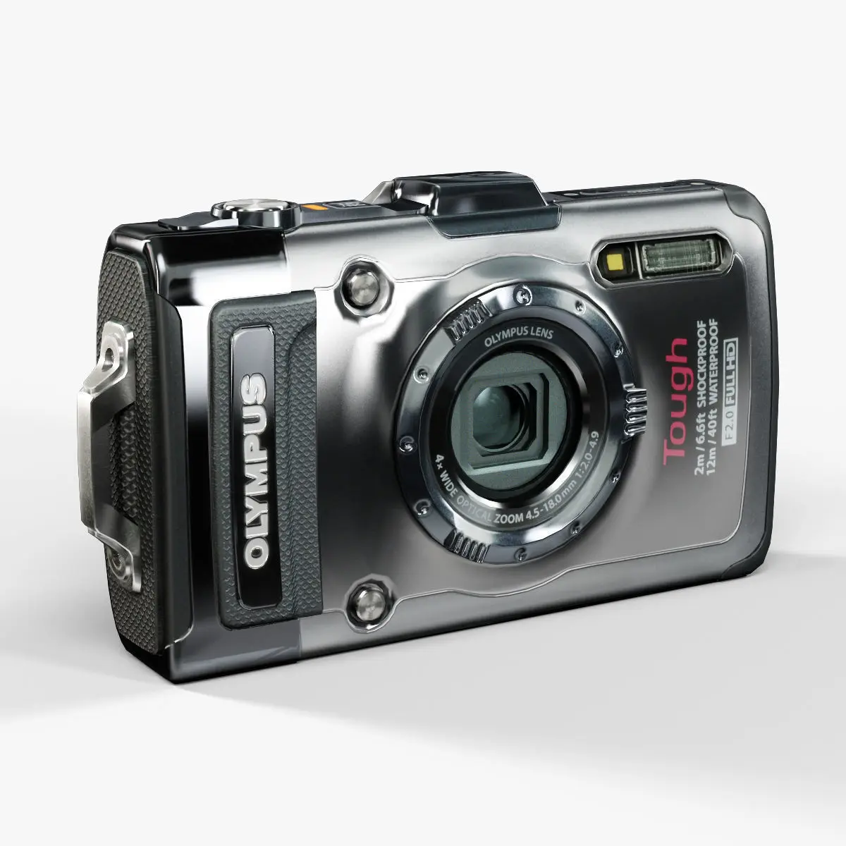 • Let me present to you high-quality low-poly 3D model Olympus Tough TG-1 iHS Silver. This model can be used in various fields 3D Graphics such as game development, advertising, interior design, motion picture art, visualization, etc... Modeling was made with ortho-photos of real camera that is why all details of design are recreated most authentically.