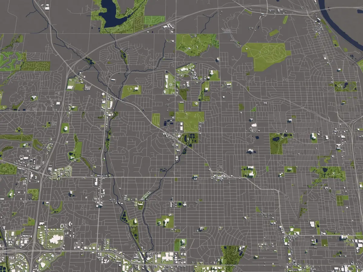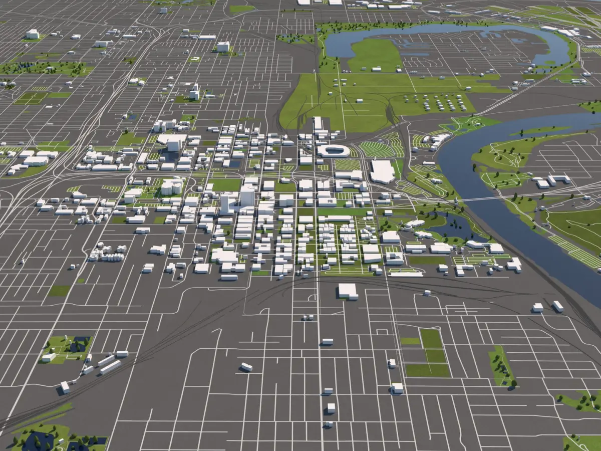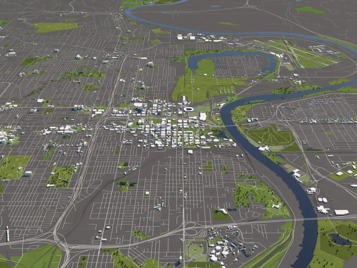 A DETAILED 3D MODEL CITY MAP OF OMAHA, USA: