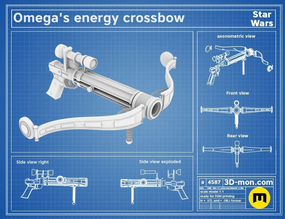 This is a digital 3D printable model of the Omega’s energy crossbow from Bad Batch – Star Wars.