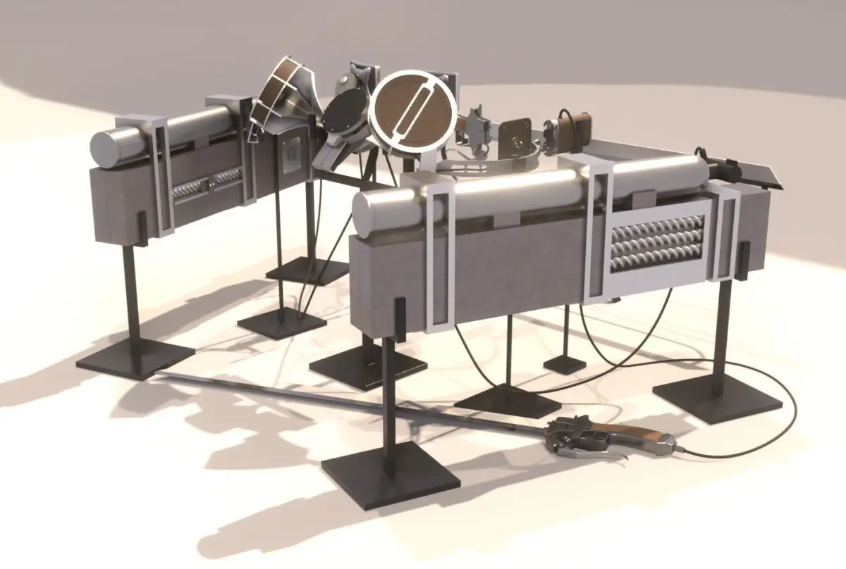 Omni-directional mobility gear from anime Attack on Titan. Ready for animation. Materials included in .blend scene. Created with original anime references. Stands included. Smooth shading used