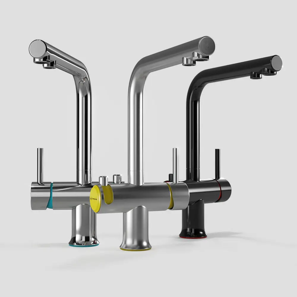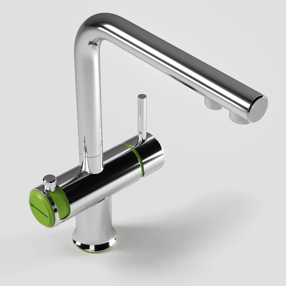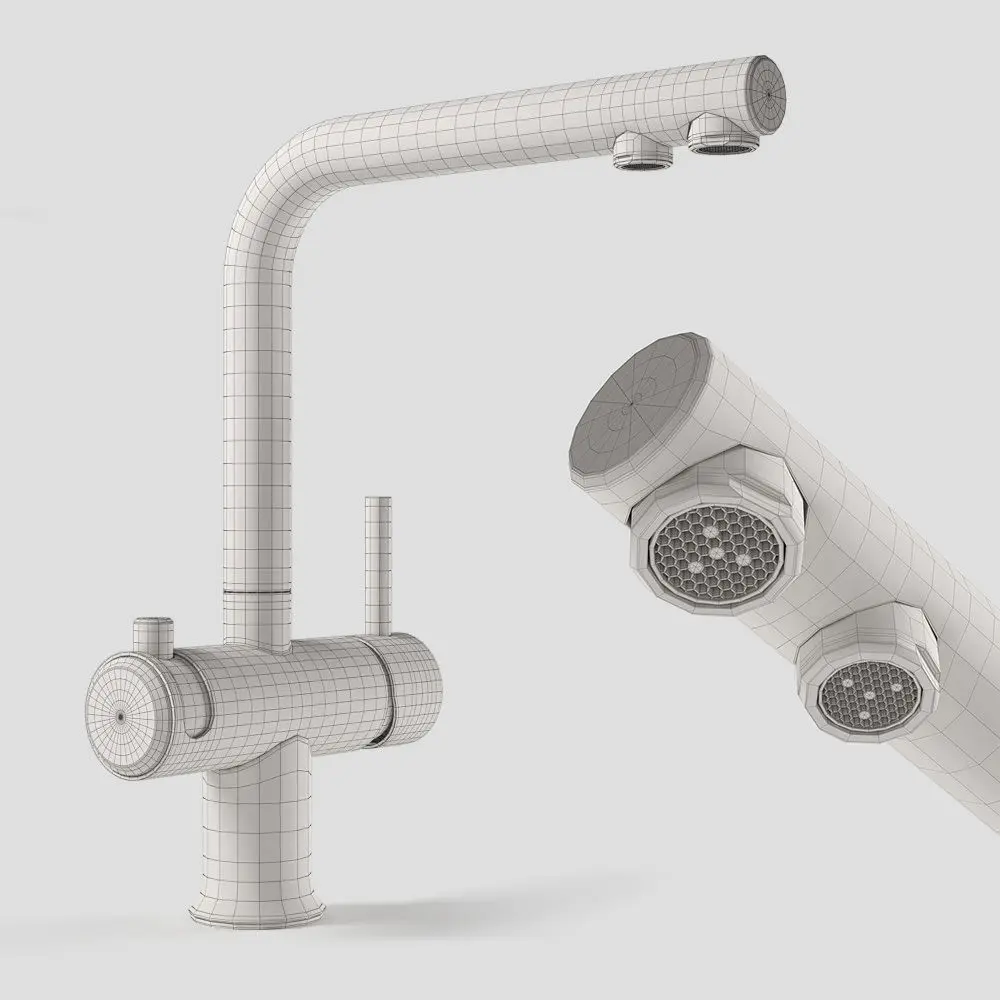 Modern design with a high spout and the ability to supply filtered water through a separate tube. This is a perfect tap for washing large kitchen items and filling large containers.
