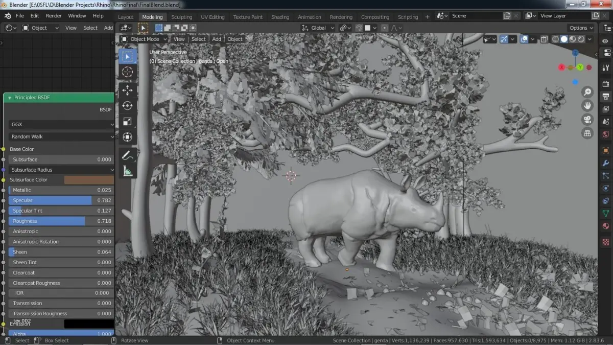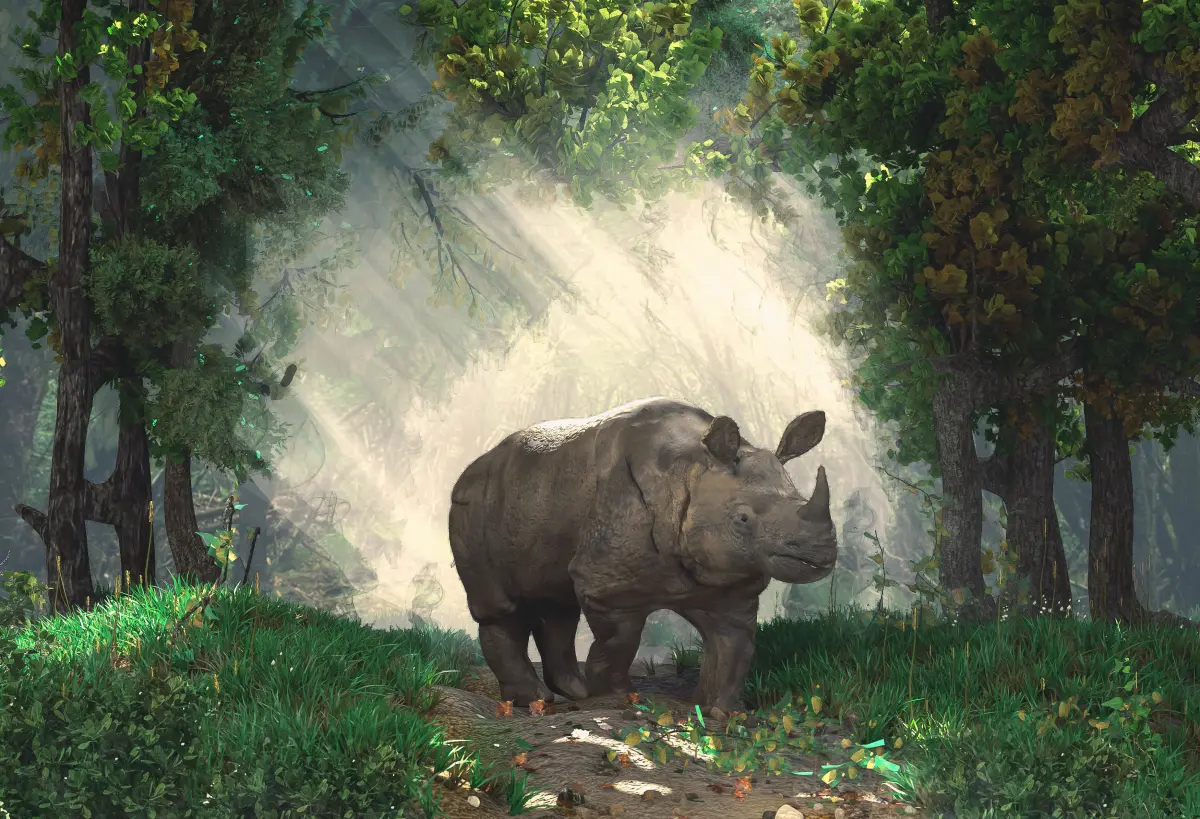 One horned Rhino Complete Scene Rigged 2 versions Low-poly 3D model