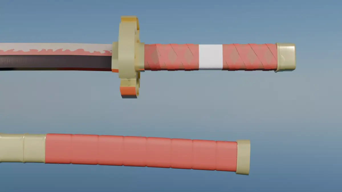 Zoro's katana Sandai Kitetsu from One Piece 3D model. Made in Blender and rendered with Eevee.