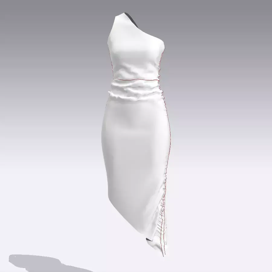 one shoulder dress elastic draped asymetric skirt Low-poly 3D model