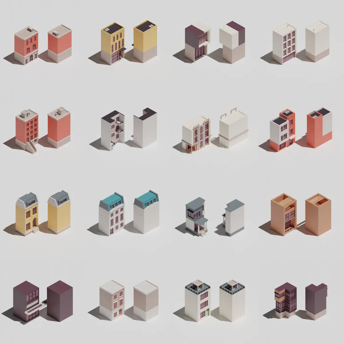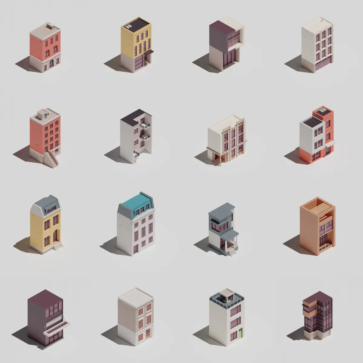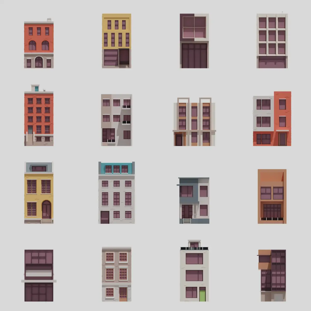 Low poly pack of buildings consists of 16 buildings and sundries.
