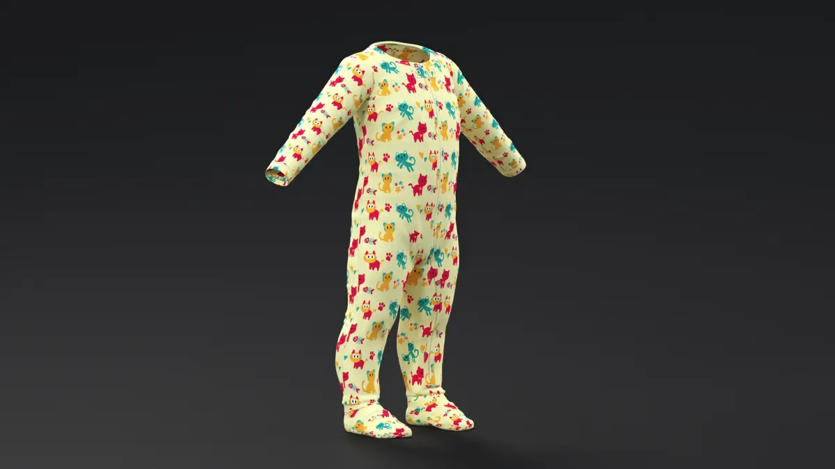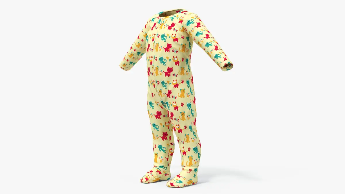 One Year Old Baby with Pajamas Collection is a set of three-dimensional models of 1 year aged boy in diaper with toddler pajamas, that are crafted from gentle, non-irritating materials, providing warmth and comfort during sleep.