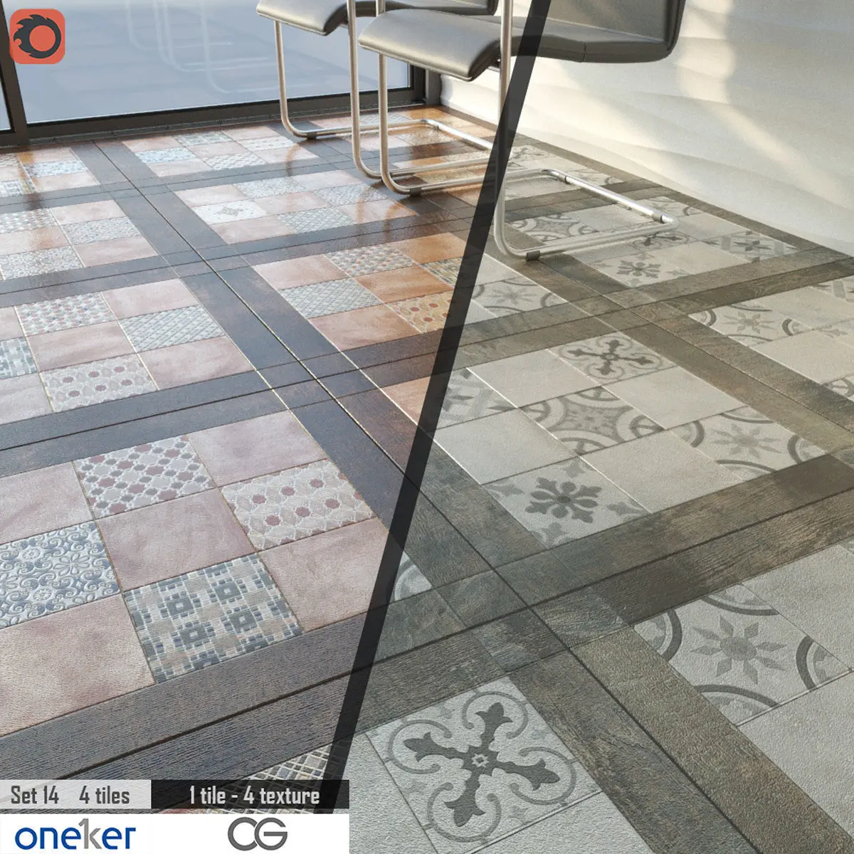 Each tile has 4 texturesNO TILING textureCORONA Renderer