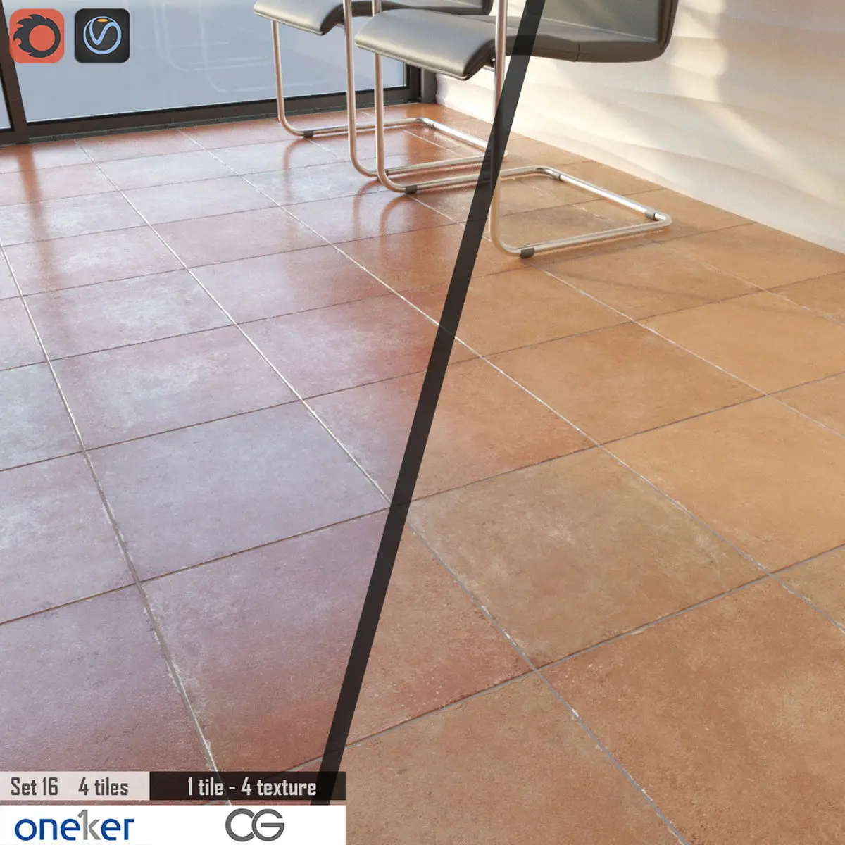 Each tile has 4 texturesNO TILING textureCORONA and VRAY Renderer