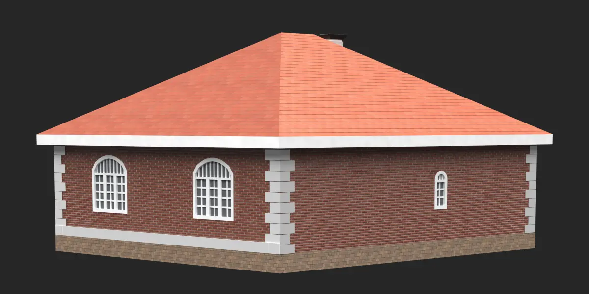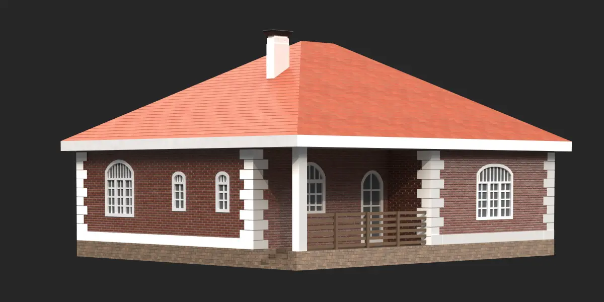 One-story private house.Polys: 2,198Verts: 3,086The model is suitable for both medium and long angles. Completed lowpoly for the purpose of use for the environment.In the scene, objects are maximally assembled into one object (attachment), on a logical basis, and mats. (wood, windows, roof, lights, etc.)There is no filling inside the building.The archive contains Vray, corona files and fbx, obj.Also all the necessary textures.The house is made in accordance with the actual size.Scene in millimeters.Dimensions 12100x10600x7100