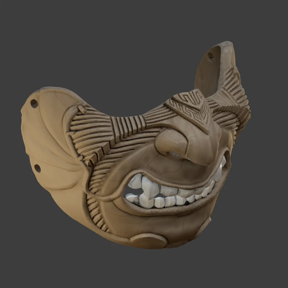 Oni Mask 11 Line pattern Half Face 3D print model