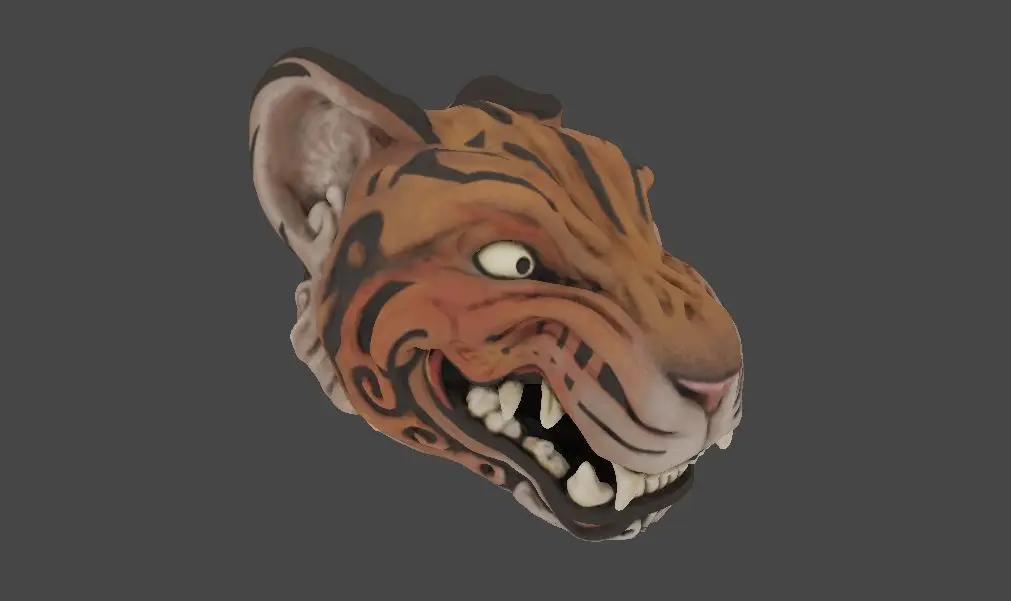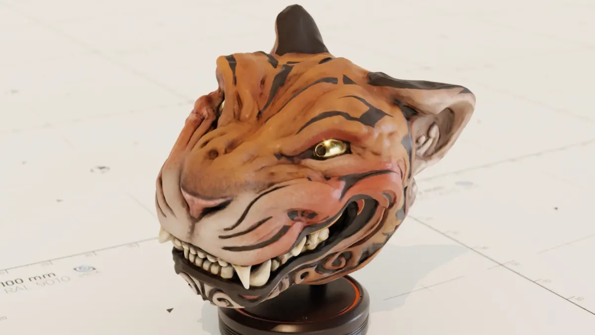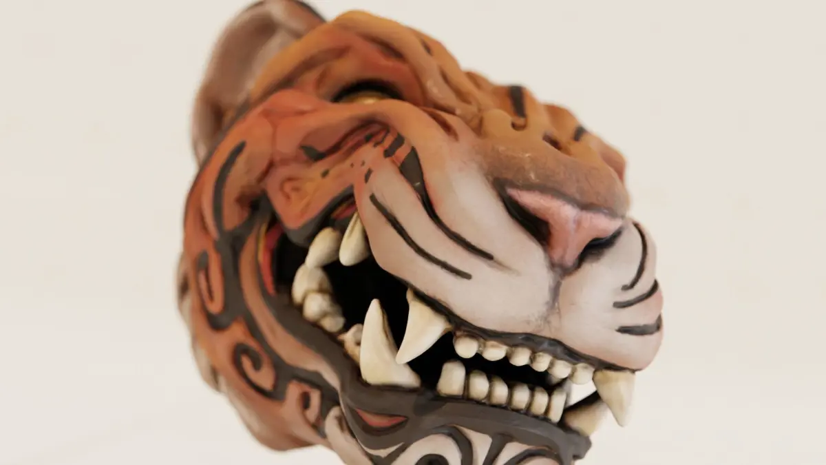 Full Colour 3D Print Ready! This miniature Tiger Oni mask is the perfect print for anyone who loves tigers and wants to add a touch of Japanese theatre flair to their workspace.