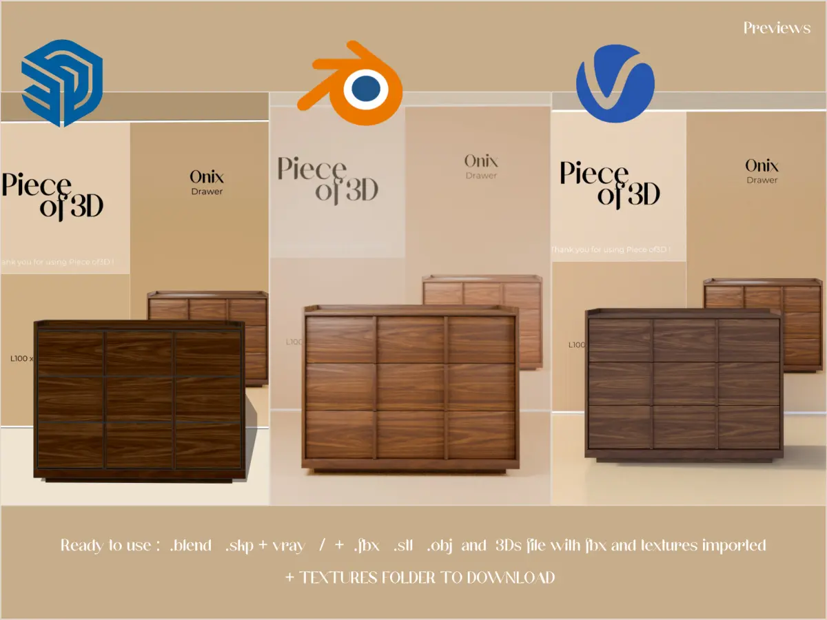 Additional formats : .stl ; .obj ; .fbx ; .3Ds file with .fbx and textures maps already imported