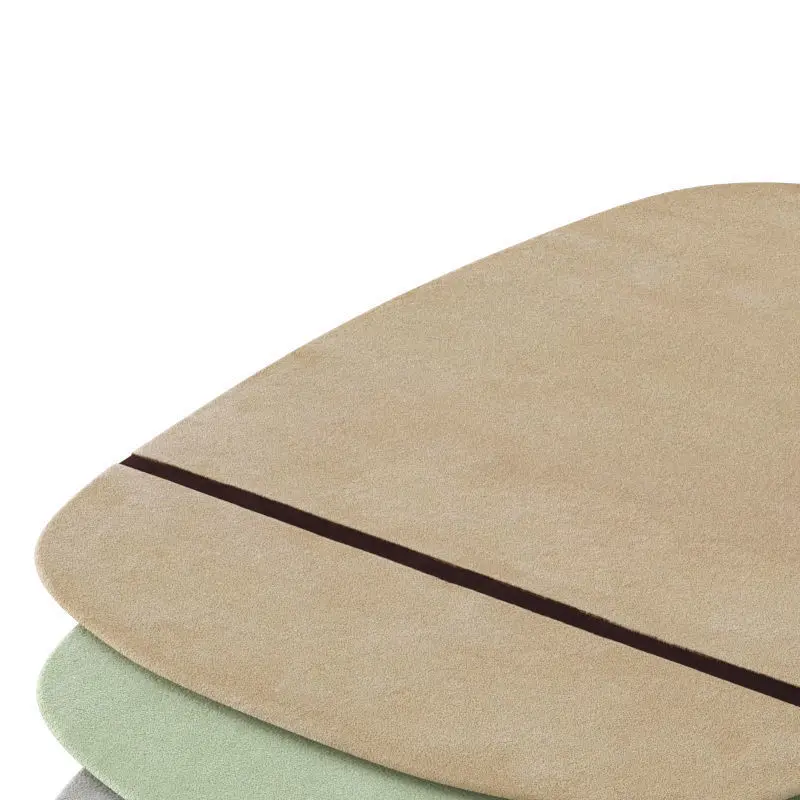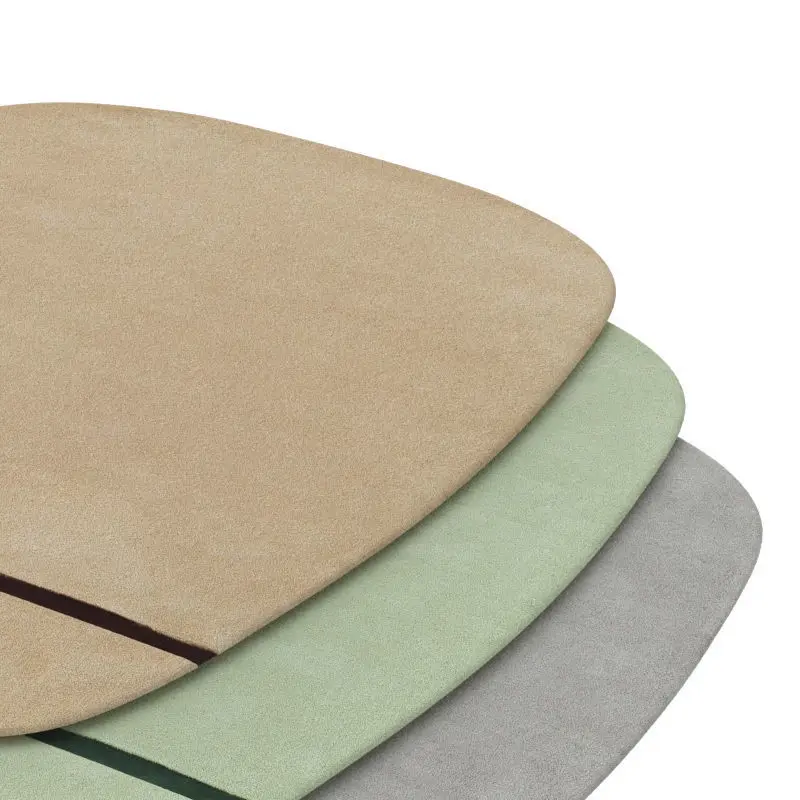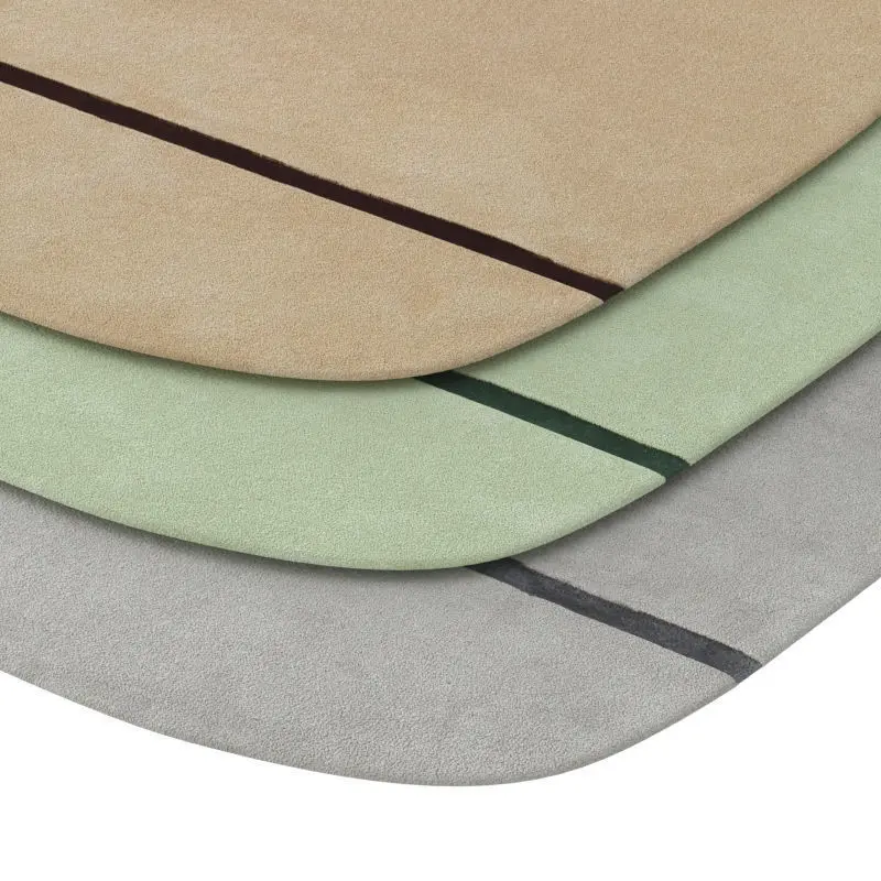 The Oona rugs are characterized by clean lines and soft curves that meet and create three unique shapes that are neither round nor square. The sober color of the carpets is interrupted by a simple line immersed in a darker color. The Oona rug is available in three sizes and colors; pink, mint and gray. The carpets can be placed in any environment and used for many purposes. For example, in the dining room, under the coffee table, next to the bed or combined for use in a hallway or in a large hall.