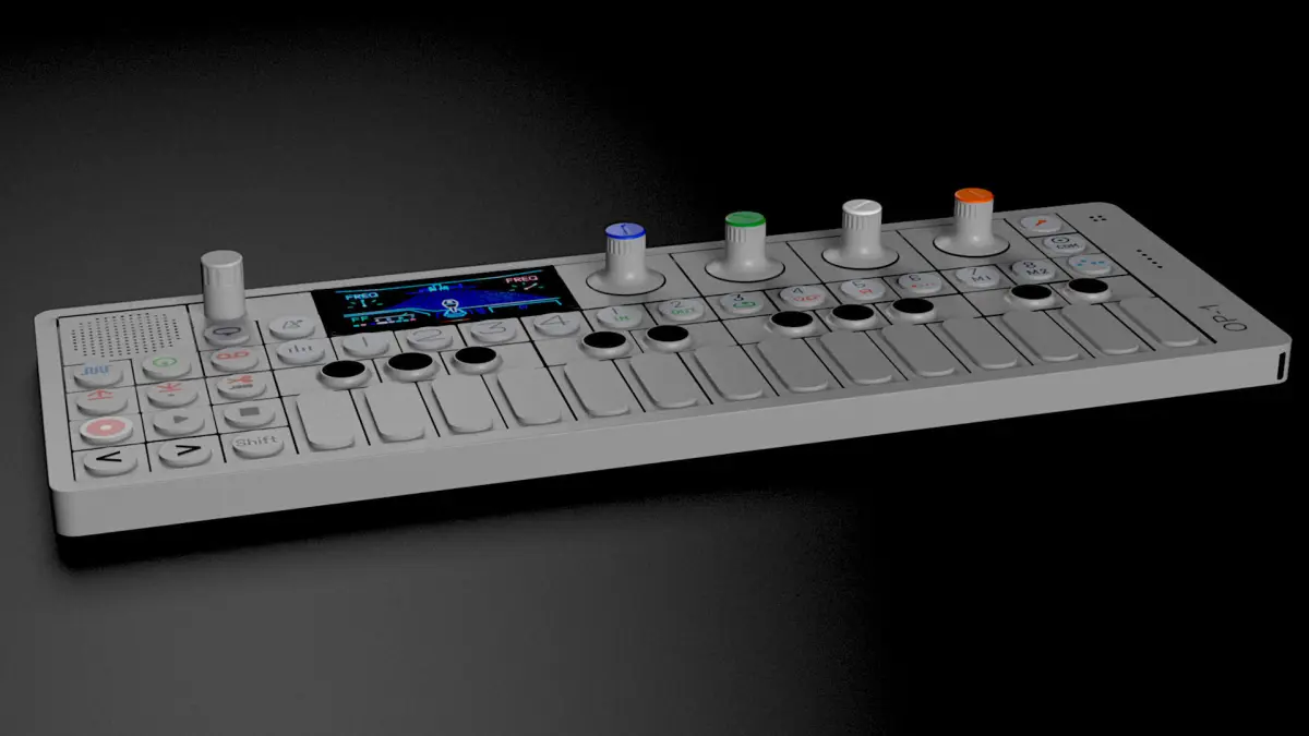 Hard surface model of musical synth made by Teenage Engineering
