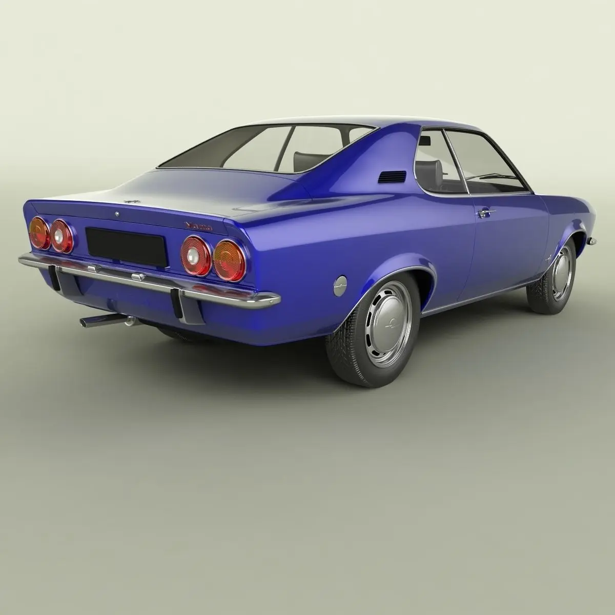 High detailed, correctly scaled model of 1970 Opel Manta A Coupe. Originally created with 3ds Max 8. Rendered with V-Ray, files with standard materials are included. Unit system is set to metric units. Model is built to real-world scale. Geometry is Editable Poly (quads/tris only). TurboSmooth is use separately to objects (75 of 127 named objects) with iterations 2 ( 1057366 polys, 548603 vert.) Each file was checked before upload. Materials and textures are included (7 textures - jpg 1024X1024).