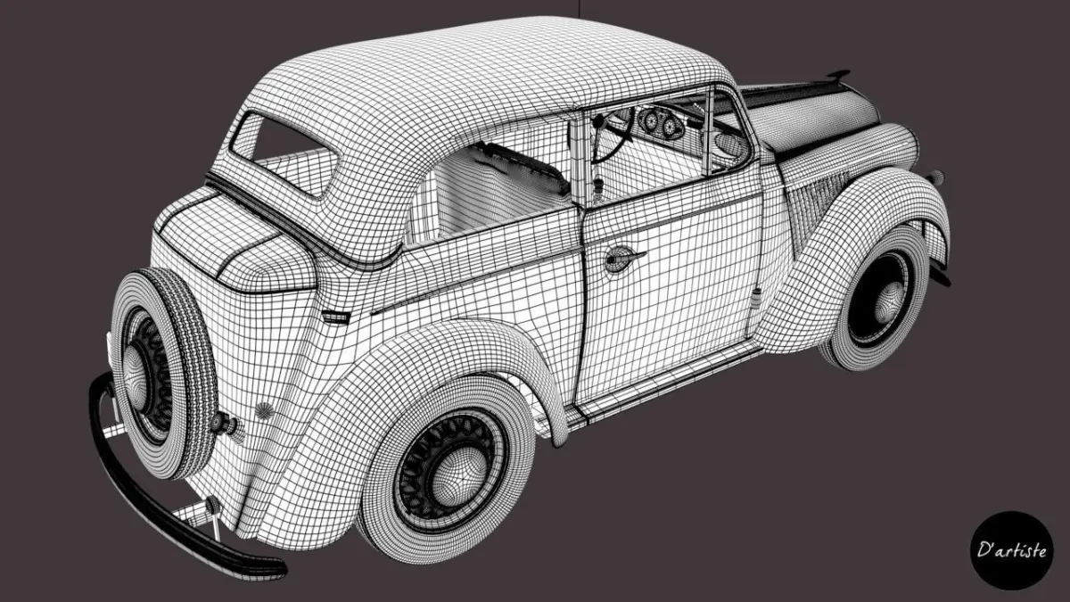 - High Polygon model of Opel Olympia 36. -- 21 Physicaly correct shaders (PBR shaders) and 6 Textures.