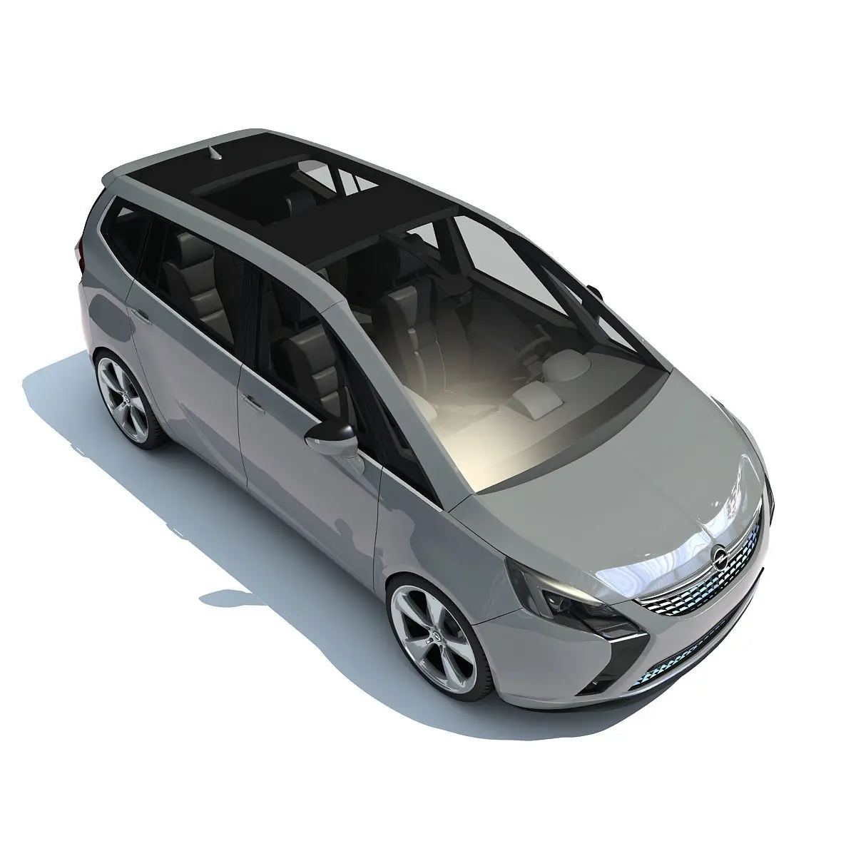 Quality 3d model of Opel Zafira with detailed interior.All textures and materials are included.Colors can be easily modified.HDRI map not included.2 versions of 3ds Max included: V-ray and standard materials.