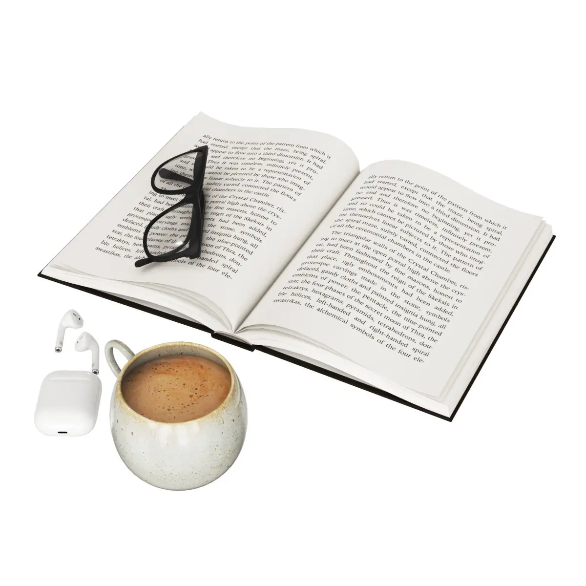 Open book with a cup of coffee