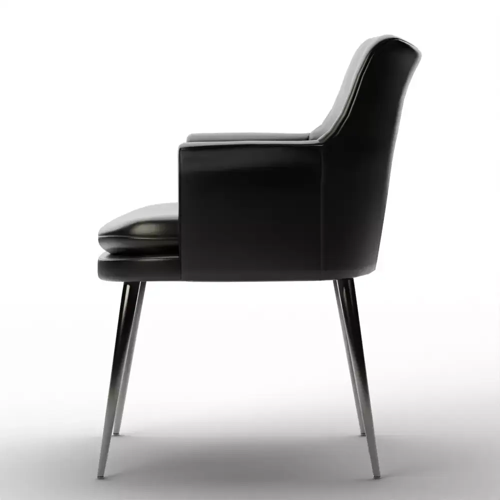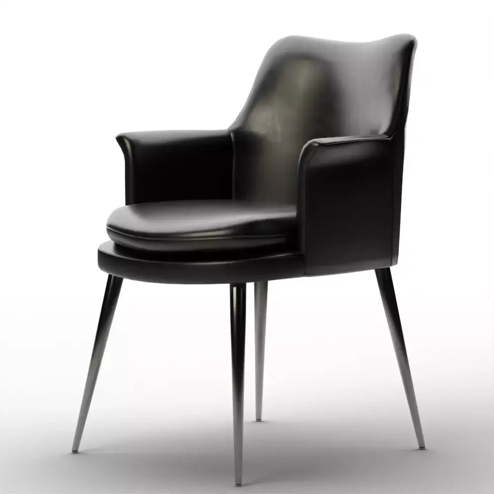 A 3D model of the Finley Wing Dining Chair in Sierra Leather (Black)—specifically the Open Box variant—is a favorite for industrial-modern and Dark Academia dining rooms. This chair is a masterclass in combining the sharp, architectural lines of a metal frame with the organic, worn-in luxury of top-grain leather.