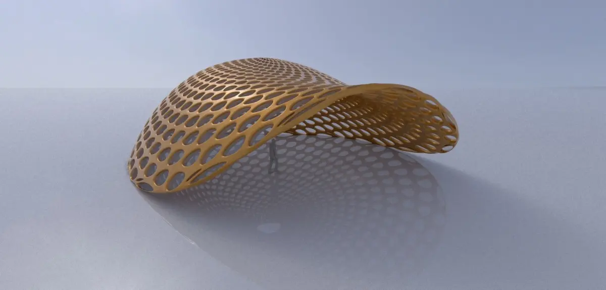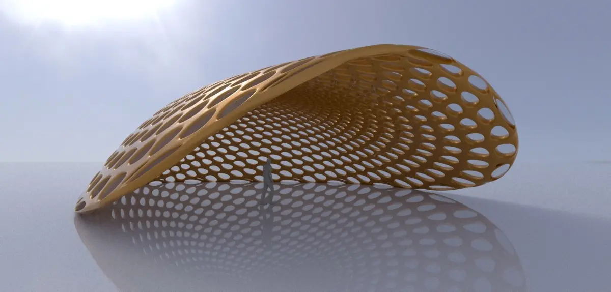 This is a Open canopy structure with round perforations made using Rhino 3D and Grasshopper plugin. Rhinoceros is primarily a free form surface modeler and Grasshopper is a visual programming language and environment that combined create unique designs.