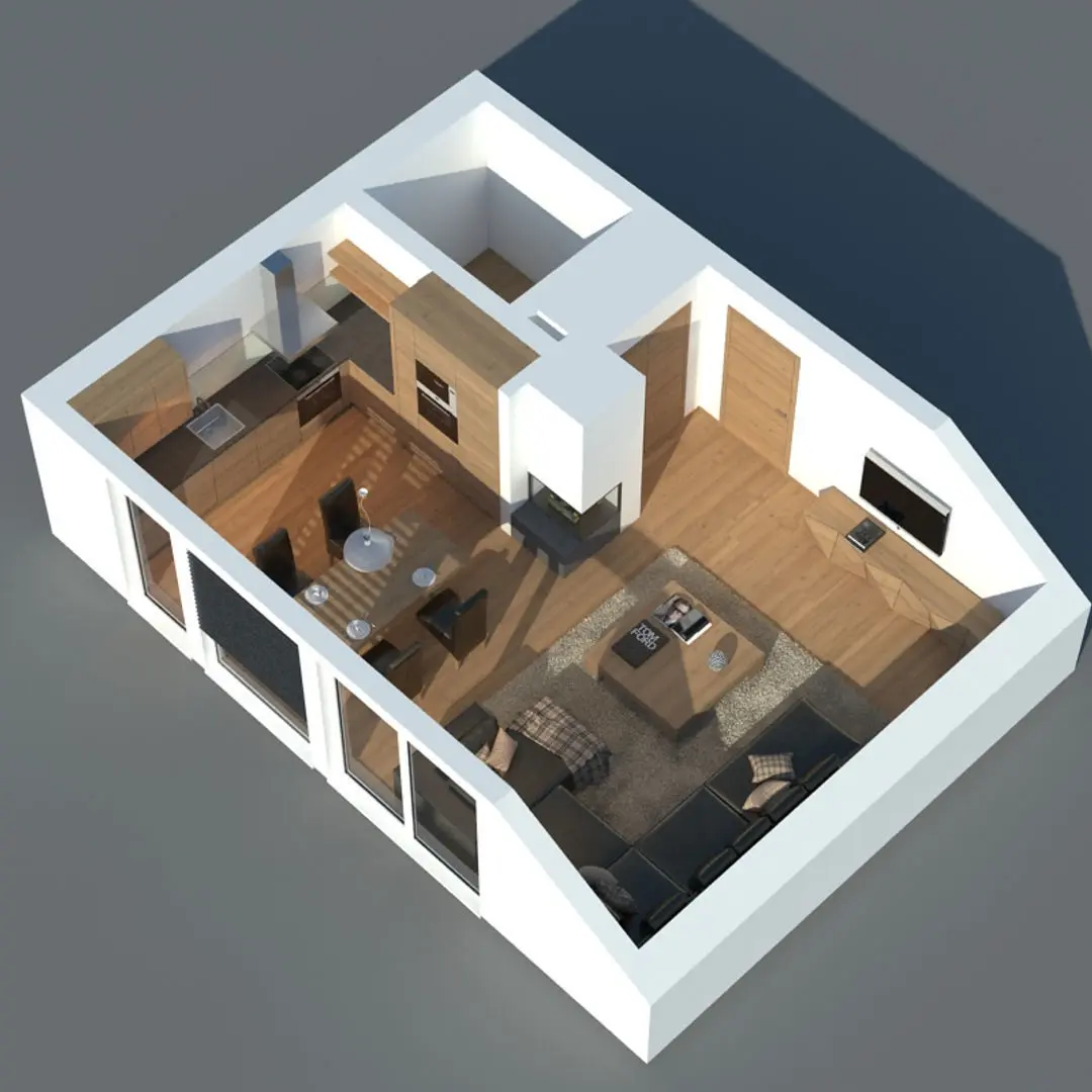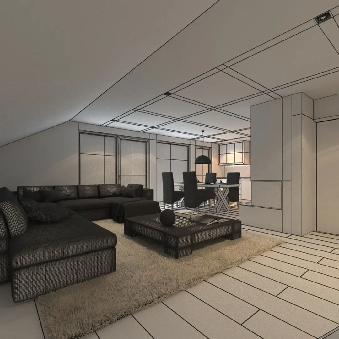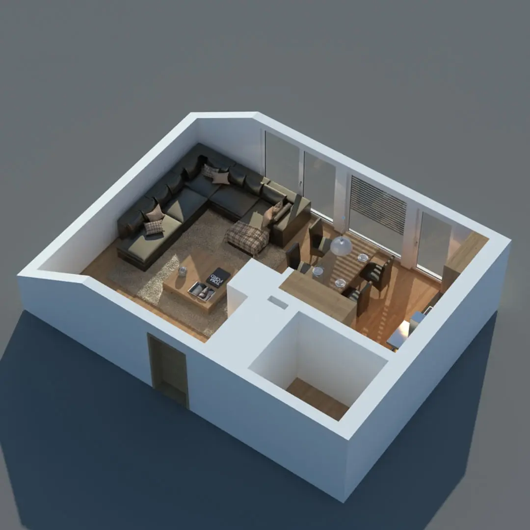 HI RES MODELS OF A N OPEN PLAN APARTMENT LOUNGE
