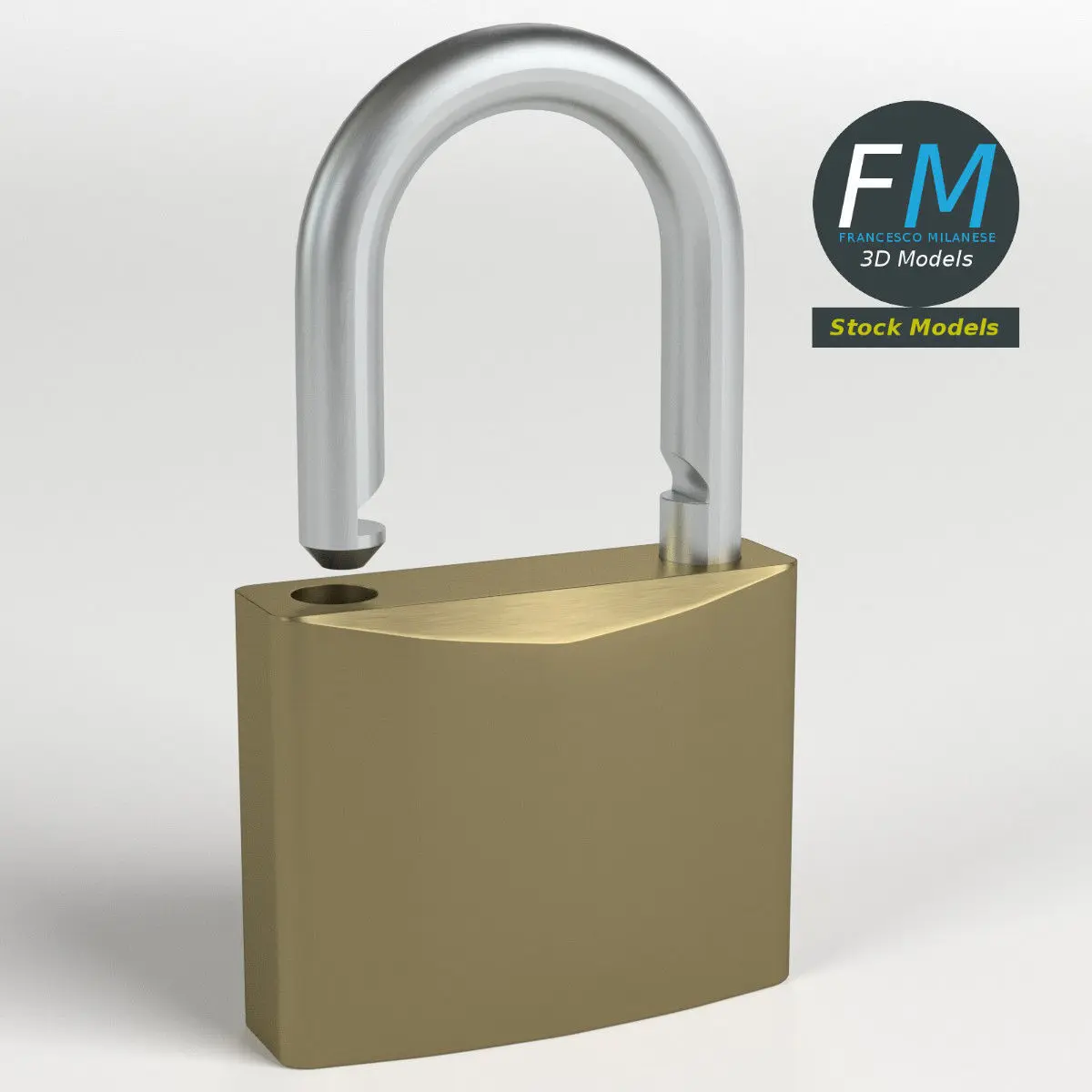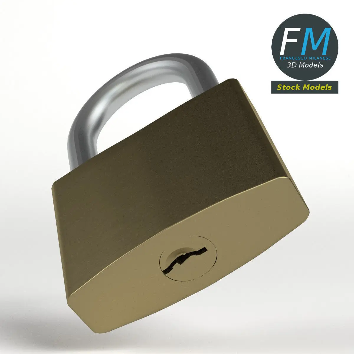 Openable padlock 3D Model. 3 objects (base, keyhole, lock --- so you can rotate or even animate them), sharing the same non overlapping UV Layout map, Material and PBR Textures set. Production-ready 3D Model, with PBR materials, textures, non overlapping UV Layout map provided in the package.