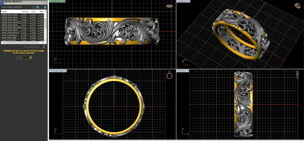 A pair of lace wedding rings female - 17.5 mm in diameter male - 20 mm in diameter. All dimensions and weight of metals are indicated in the screenshot. These rings can be changed in size with free transformation in the 3D program to the size you need. If you do not know how to work in the 3D program, then contact me and I will resize to the one that you need. in the product position, I uploaded the original editable 3D file for your convenience. And also prepared for printing STL files.\ put it if you like these rings, and also subscribe so as not to miss the publication of my new products. I also accept orders for the manufacture of 3D jewelry designs.