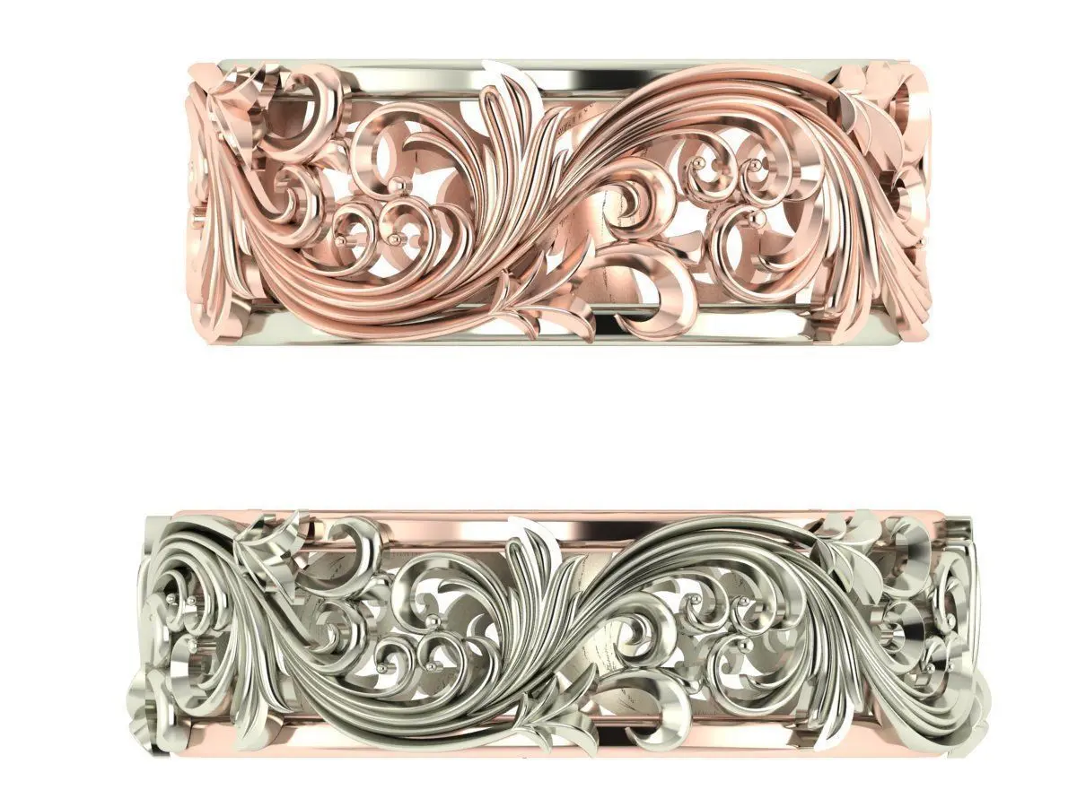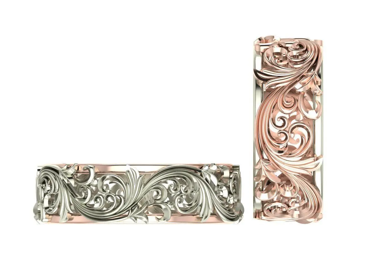 A pair of lace wedding rings female - 17.5 mm in diameter male - 20 mm in diameter. All dimensions and weight of metals are indicated in the screenshot. These rings can be changed in size with free transformation in the 3D program to the size you need. If you do not know how to work in the 3D program, then contact me and I will resize to the one that you need. in the product position, I uploaded the original editable 3D file for your convenience. And also prepared for printing STL files.\ put it if you like these rings, and also subscribe so as not to miss the publication of my new products. I also accept orders for the manufacture of 3D jewelry designs.