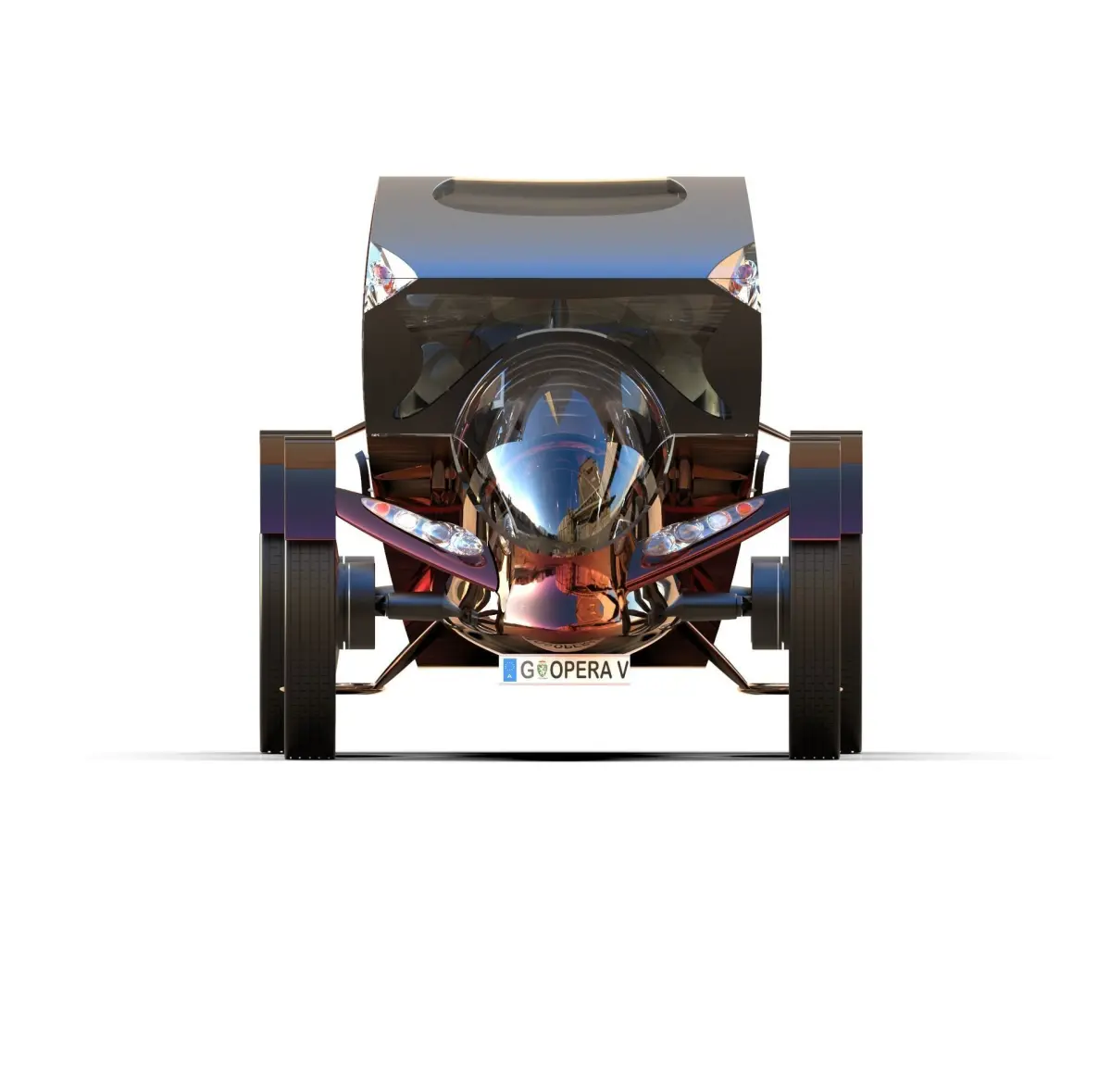 Opera V, a sci-fi sustainable transportation-vehicle leaned on a horse cab (Fiaker) for the Opera in Vienna. The driver is sitting in the middle of the car, while the passengers having an initial relaxing time for the show.