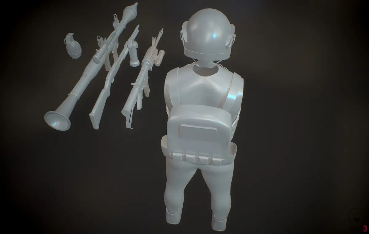 High Quality model of a Soldiers/Operators clothes and 6 weapons. M4, Mossenburg 500, RPG7, MK2, Tactical Knive, Flashbang Grenade. No textures included. Individual materials all named and assigned in the .blend file. All weapons individually grouped, named and organized. 5 different file types included for easy export to game engines. Easy editable models and ready for texturing. Rig and Animation ready. Good retopology. Easy file access.