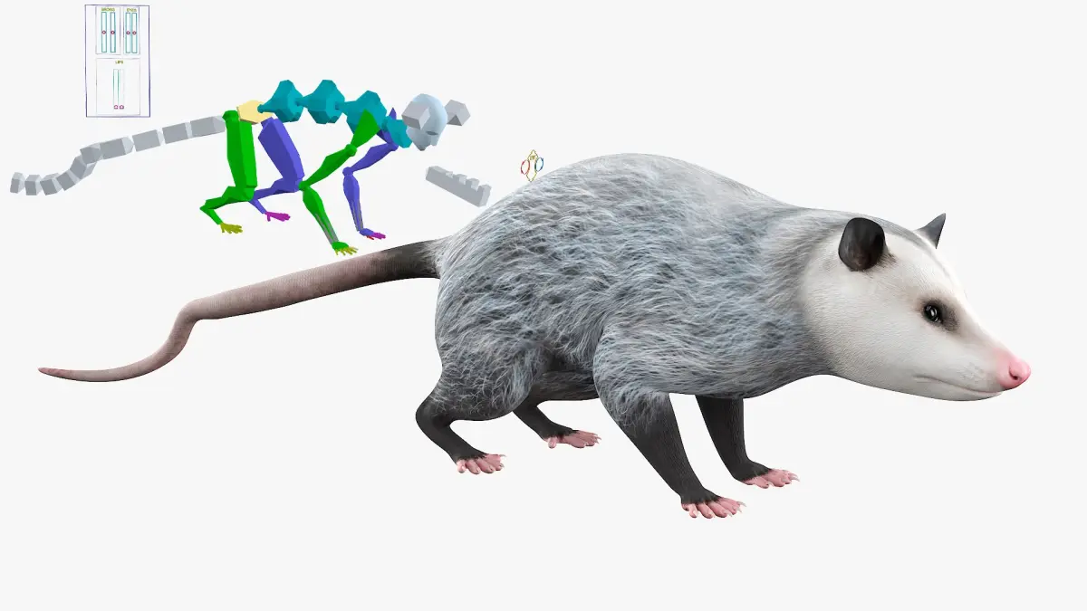 Opossum Walk and Dead Animated Rigged is a three-dimensional model of opossum, capturing the unique features and appearance of this nocturnal marsupial.