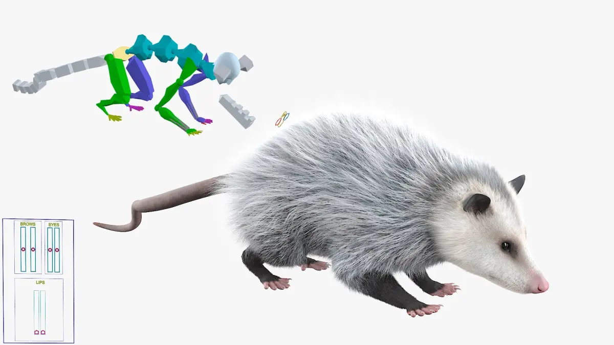 Opossum Walk and Dead Fur Animated Rigged is fully rigged and is ready to be animated. You can easily position it the way you need or animate it the way your project requires using helpers in 3D Studio Max. See the turntable to get an idea of how rigging works.