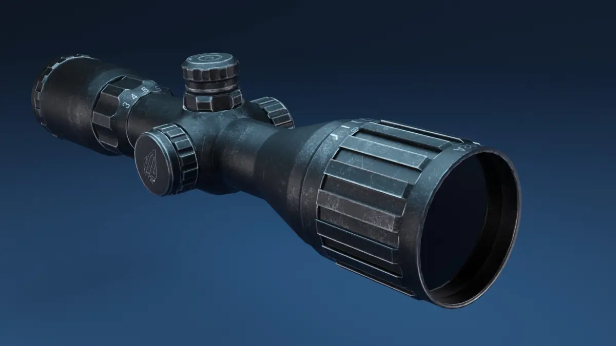 low poly 3d model optical sight with textures in substance painter vertices 3 369edjes 6 388faces 3 024triangles 6 536