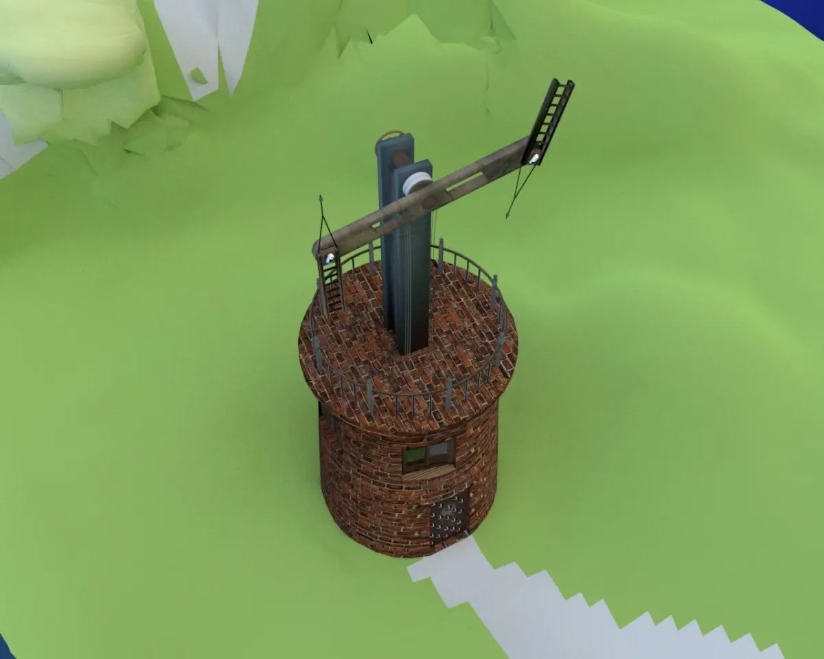 Model is full animated: all mobile indicators and iron chains is rigged and ahve bones. To more colour observ, model have low island and decorate water, without handcraft sky from render.