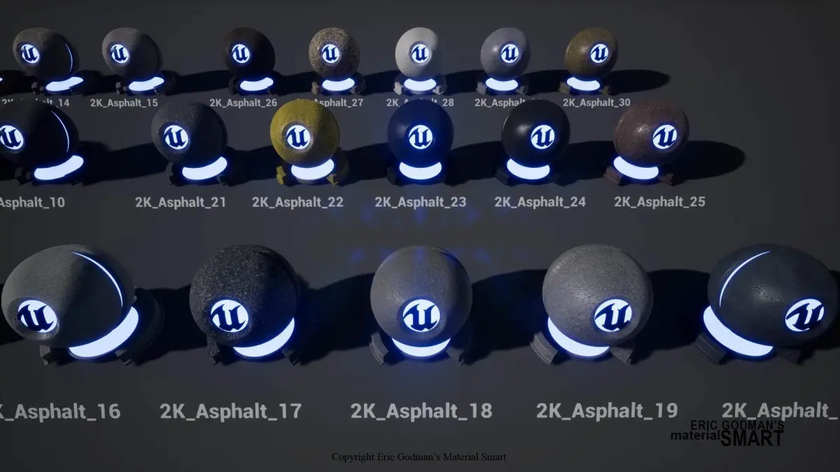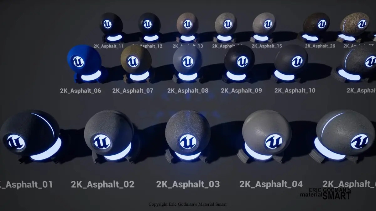 A Set of 60 optimized asphalt material instances created based on master materials from Material Smart: Concrete Series, featuring texture loading capacity minimization, distortion, normal far field fall-off, and world aligned for PC/Mobile development. Before you buy, please check the high custom version: Asphalt World Aligned Materials: same featured materials with full texture maps customization, treading off its texture loading capacity.This package contains a set of 60 optimized material instances. 30 advanced/basic material instances for each PC/Mobile development. All material instances are created based on master materials from Material Smart: World Aligned Concrete Series. Basic material instances featuring: • N map options • BC and R maps are now replaced by Diffuse maps with Alpha channel • Full UV optionsAdvanced material instances featuring: • BC, and N map options • S, R, H, and AO maps are now replaced by Optimized maps with RGB and Alpha channels • Full UV optionsAdditional functionalities featuring: • World Aligned toggle options on XY|XYZ|Z • Texture distortion options • Normal map fall-off at far field option • Simple/advanced S/R texture map options • Individual UV options for all secondary texture mapsFor more asphalt master materials, please check Material Smart: World Aligned Concrete SeriesFeatures: • 30 material instances for Mobile application development (Basic) • 30 material instances for mid-to-high end PC/console application development (Advanced) • 60 texture maps for Mobile material instances in 2048 resolution • 90 texture maps for PC/Console material instances in 4096 resolution • World aligned options on XY | XYZ | Z • Tessellation can be fine-tuned and toggled on/off • Secondary Texture Distortion option can be toggled on/off • Simple/advanced specular selection • Simple/advanced roughness selection • Normal map fall-off at far field option • Specular texture/specular simulated from roughness selection • Diffuse map channels: BC (RGB), R (Alpha) • Optimized map channels: S (R), R (G), AO (B), T (Alpha)Number of Master Materials: 2Number of Material Functions: 10Number of Textures: 155Number of Material Instances: 60Documents: Source textures cite and license can be found under the project folder at “Source Texture Cite & License”