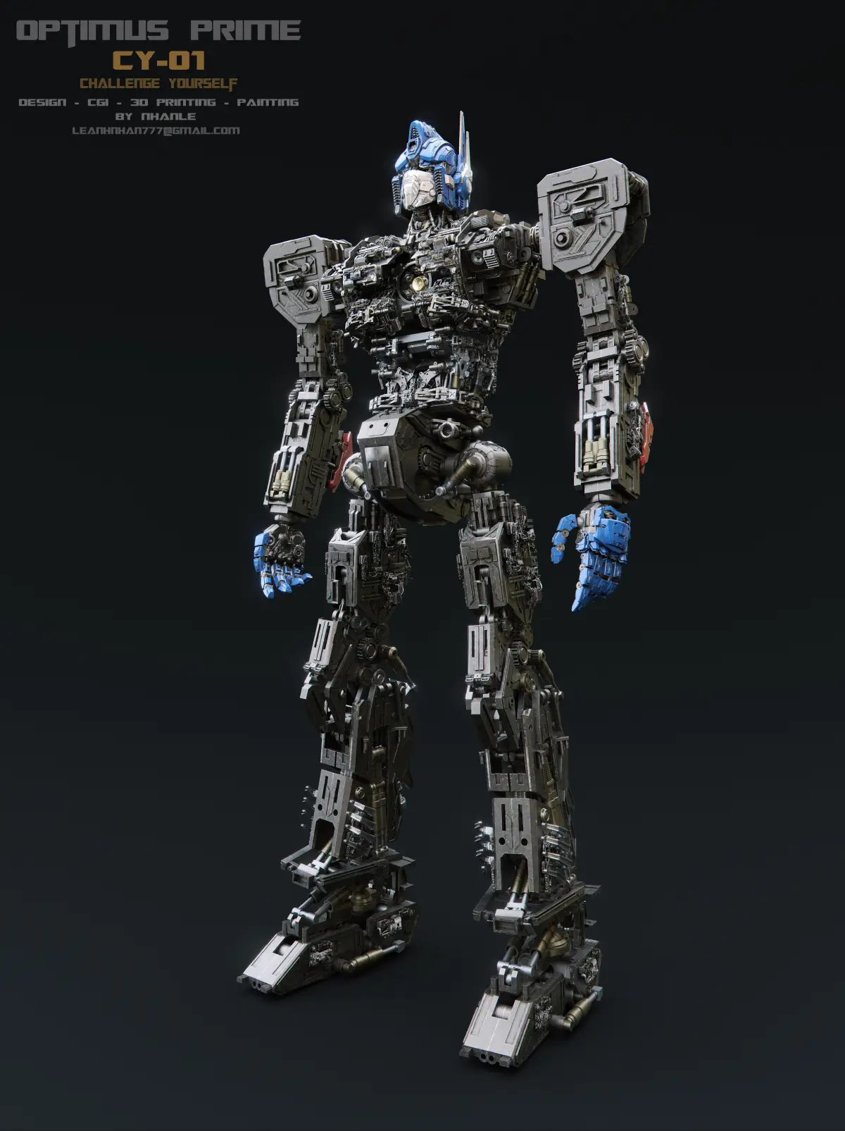 - This is a challenge I set for myself. The challenge is to create a toy robot model with full range of flexibility (movement comes with the connection between the details). And I chose the character Optimus prime with my own design from appearance to structure. The challenge does not allow reference to actual toys (can see clips or images). It is done in free time.