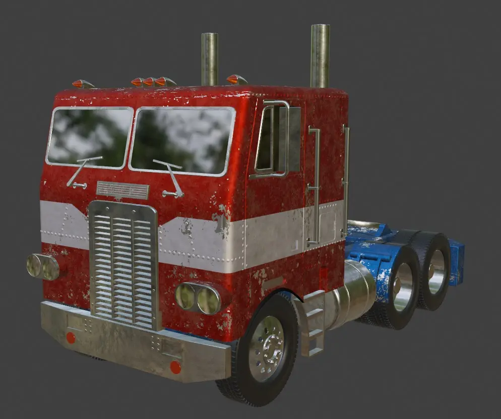 this Model was created in 2021 and was later updated in 2023. it was made for film and animation and comes fully rigged with the alterntate mode of a Truck. completed with procedural materials