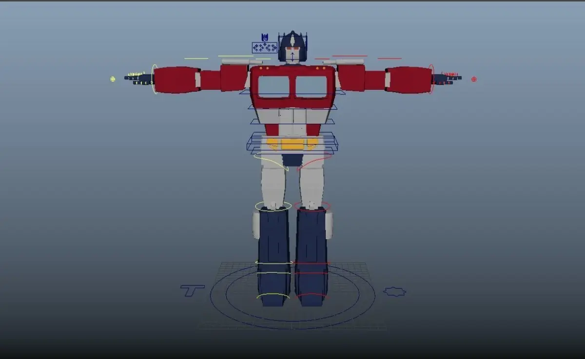 The rig can transform from robot mode to truck mode. It also is a regular robot rig (with FKIK arm/leg controls, body controls, hand and facial controls). He also includes a gun that can transform. The truck also has a rig so it can be driven around.