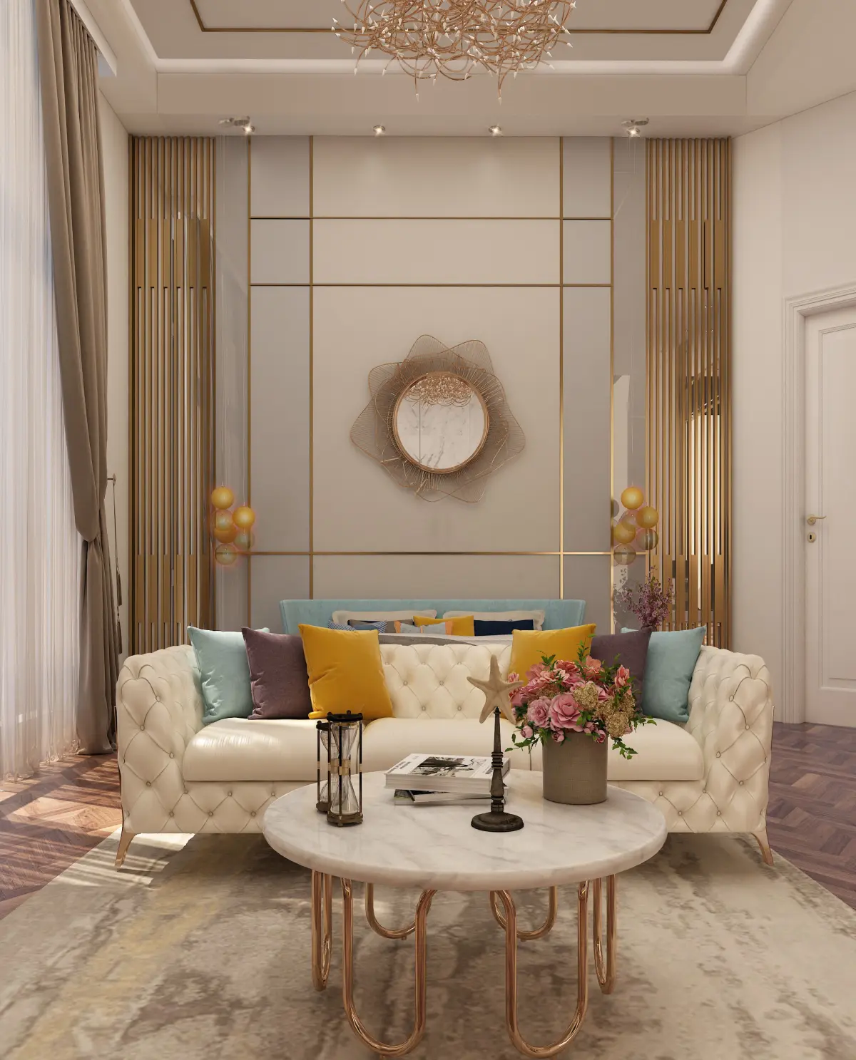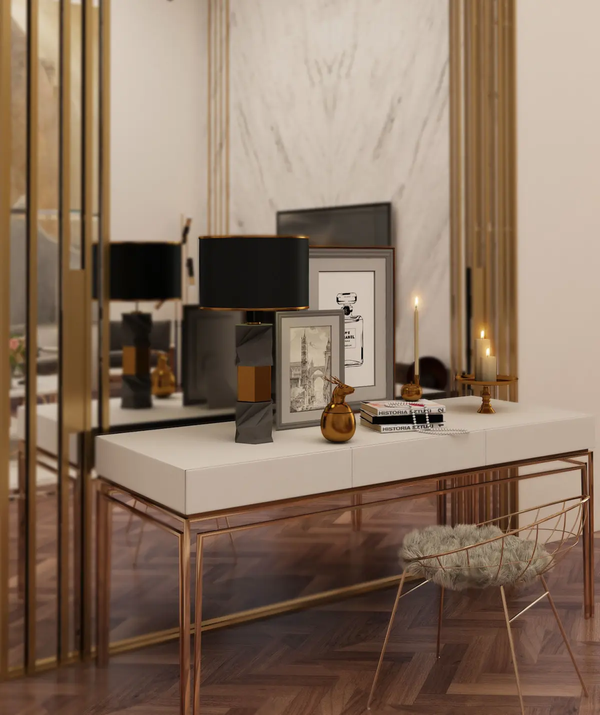 Opulent & Modern Master Bedroom Interior Scene - Luxury Design with Lounging & Vanity AreasDescription:Presenting an exceptionally detailed and sumptuously designed 3D interior scene of a luxurious master bedroom, perfect for high-end architectural visualization, elite interior design portfolios, and photorealistic rendering projects. This scene embodies sophisticated elegance, blending classic comfort with modern opulence through rich materials, intricate detailing, and thoughtful spatial arrangement.The focal point of the Bedroom Area is a lavish bed with a plush headboard, exquisitely dressed in fine bedding. The wall behind the bed is a masterpiece of design, featuring bespoke paneling with integrated lighting and striking gold accents, elegantly complemented by a decorative sunburst mirror. Bedside tables with sophisticated lamps provide ambient light and functional surfaces.A dedicated Lounging Area within the bedroom offers a comfortable and stylish retreat. It features an elegant tufted sofa adorned with vibrant decorative pillows, centered around a chic round marble-top coffee table with a golden base. This area is perfect for relaxation or intimate conversations.Adjacent to this, a refined Vanity or Study Area presents a sleek desk with a metallic frame, a stylish chair, and tasteful decorative items like lamps, framed artwork, and candles, suggesting a space for personal grooming or light work.The room is further enhanced by a grand, elaborate chandelier that casts a soft, enchanting glow, and floor-to-ceiling curtains that provide both privacy and a sense of grandeur. A sophisticated entertainment wall, featuring a mounted TV against a luxurious marble backdrop and a sleek media console, completes the high-end appeal. The flooring showcases elegant herringbone wood patterns, adding to the room's classic charm.This scene is meticulously modeled, textured, and lit to deliver an unparalleled level of realism and luxury, making it an ideal asset for showcasing premium residential interiors.Key Features:Luxurious Design Aesthetic: Captures the essence of high-end modern classic interior design with a focus on rich textures and elegant details.Comprehensive Room Elements: Includes a master bed, sophisticated lounging sofa, coffee table, bedside tables, vanity/desk, chair, entertainment unit with TV, and intricate wall paneling.Premium PBR Materials & Textures: Extensive use of high-resolution PBR-ready materials, including various types of marble, polished metals (gold/brass), plush fabrics (velvet, upholstery), fine wood (herringbone pattern), and detailed decorative elements, ensuring authentic visual representation.Detailed Architectural Finishes: Features custom wall paneling, ceiling details, and flooring patterns that enhance the overall realism and grandeur.Optimized Geometry: Clean quad-based mesh, optimized for smooth subdivision and efficient rendering.Well-Organized Scene: Logically named objects, materials, and layers for easy navigation, customization, and asset re-use.Sophisticated Lighting Setup: Includes a professional lighting scheme that leverages natural light from large windows and a variety of artificial fixtures (chandeliers, wall sconces, table lamps), creating a warm, inviting, and luxurious ambiance.Versatile Use: Ideal for high-end residential architectural visualization, luxury interior design presentations, virtual tours, real estate marketing, and portfolio showcases.Perfect for:Luxury Architectural Visualization ArtistsHigh-End Interior DesignersReal Estate Developers and Marketing Agencies focused on premium properties3D Artists and Animators seeking a sophisticated and ready-to-render, high-detail bedroom environment.