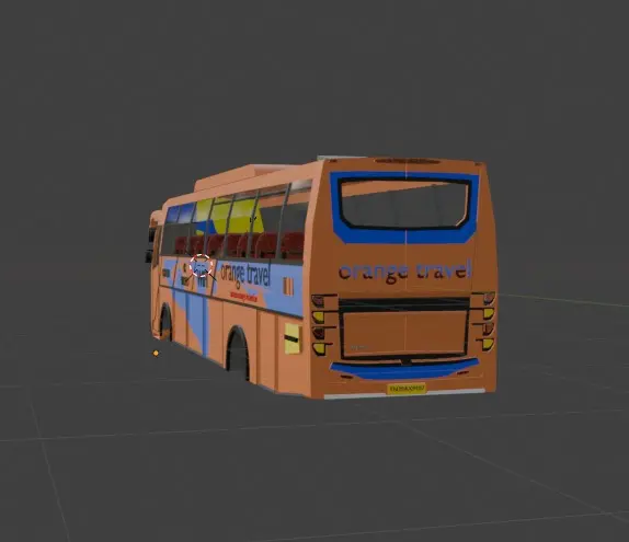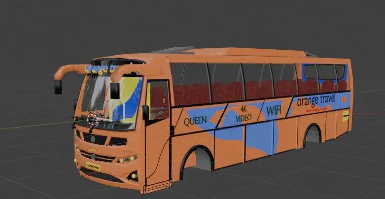 This is a 3D model of a vibrant orange bus, designed for use in a Unity-based bus simulator game set in Tamil Nadu. The bus model is available in both FBX and OBJ formats, making it compatible with various 3D software and game engines. The bus features realistic detailing, including tinted windows, rounded headlights, side mirrors, and smooth wheel casings, all contributing to a dynamic, polished look. Its bold orange color gives it high visibility, ideal for city or rural road settings, and adds a distinctive aesthetic to the game environment."