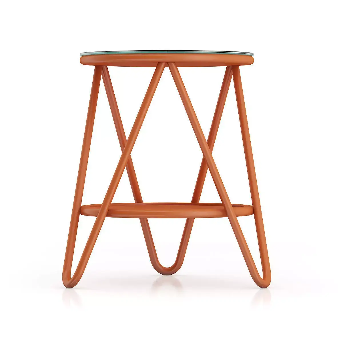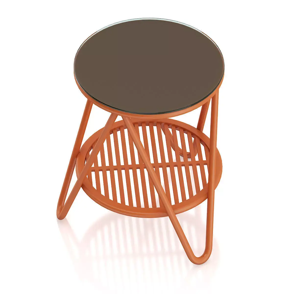 3D model of small orange coffeetable made of plastic and with glass top. Compatible with 3ds max 2010 or higher and many others.