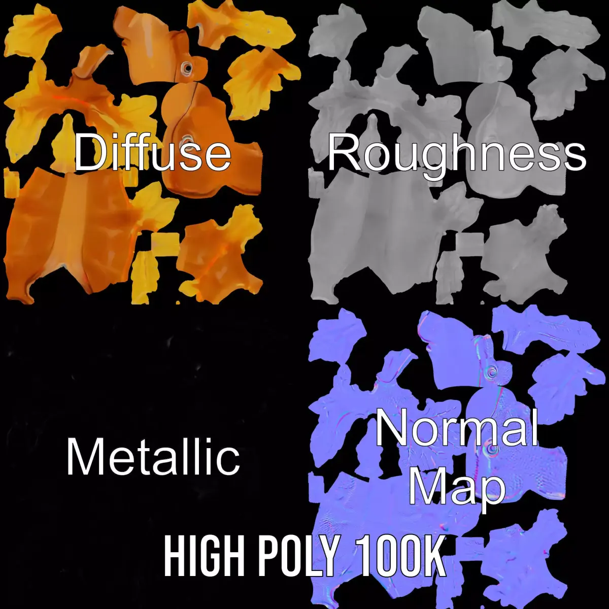 The model's textures are PBR, Diffuse, NormalMap, and reflection/roughness/metallic, which are suitable for any modern rendering engine. All models accurately unwrapped and have no overlapping UV. All textures are 4096*4096 in size.