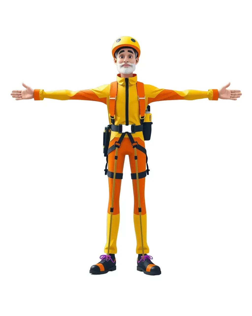 Introducing the Orange Safety Climber model pack—a highly detailed 3D character model designed for dynamic environments. This model features an eye-catching orange safety suit complete with climbing gear, ideal for use in adventure games, training simulations, or safety demonstrations. Each model has 3 levels of detail: low-poly (1000 triangles for mobile), middle-poly (10,000 triangles for environment), and high-poly (100,000 triangles), which allows for the use of this model in production rendering (such as 3ds Max, Maya, Cinema4D, Blender, V-Ray/Corona/Cycles, and all others), game engines (Unity and Unreal compatible), and interactive presentations, providing a choice of detail based on the LOD System principle. The model's textures are PBR, Diffuse, NormalMap, and reflection/roughness/metallic, ensuring compatibility with any modern rendering engine. All models are accurately unwrapped and have no overlapping UVs. All textures are 4096*4096 in size. If you enjoyed this model, please like and leave a comment!