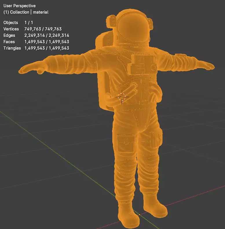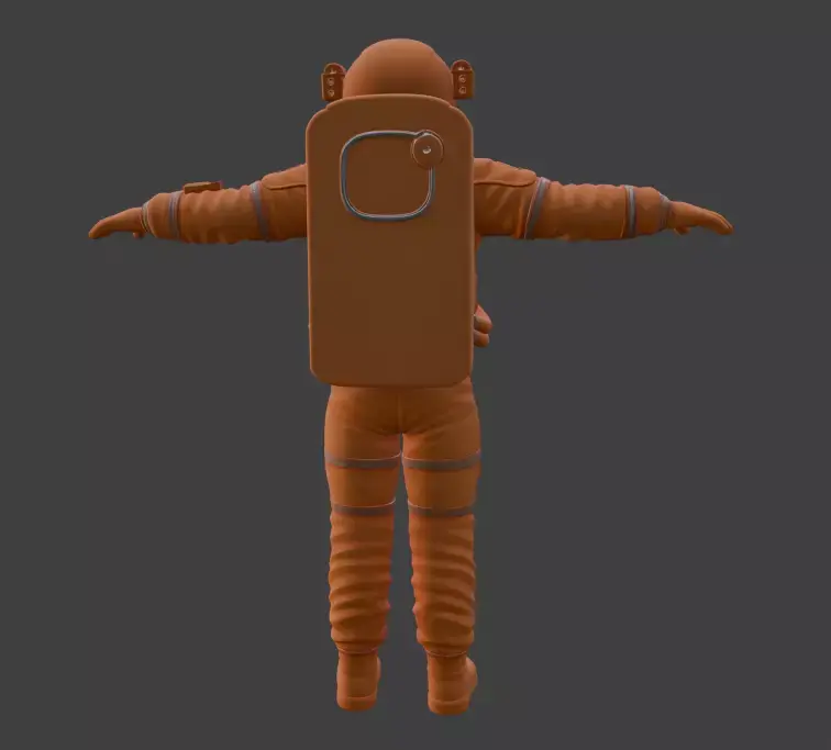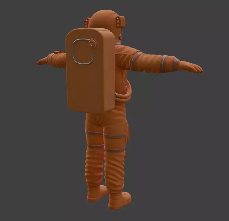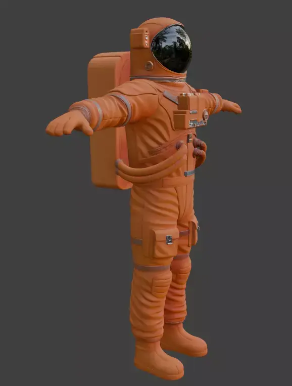 Highly detailed 3D model of a modern orange extravehicular activity (EVA) spacesuit worn by astronauts during spacewalks. Features realistic fabric folds, life support backpack (PLSS), helmet with reflective visor, gloves, hoses, connectors, pockets and authentic NASA-style details. Perfect for space station scenes, moon missions, Mars renders, sci-fi projects, VR and high-end visualizations. Clean topology, non-overlapping UVs, PBR materials ready for any render engine.